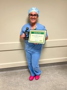 After surgery, I remember her coming to check on me multiple times in PACU to make sure I was doing okay. She took the time out of her busy day to make sure I knew she was still there for me, even after I left the OR. What McKenzie did for me that day is something I will never forget. She truly cared about me physically and emotionally. She showed both empathy and compassion when I was scared to death. She is the definition of a nurse doing God’s work, and I am so grateful for her. She is so deserving of this award.”