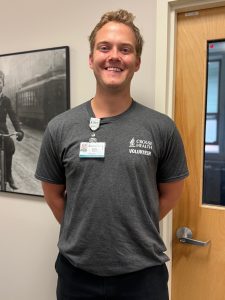 “I just try to be helpful in any way possible,” Luke says of his volunteer experience. “I check in with the nurses and tell them I am here to help with anything: refilling patients’ water cups, help with discharge or just sitting with patients.”