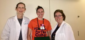 Chief Nursing Officer Betty O’Connor, left, and Nurse Manager Kris Brown presented Amy with her award.